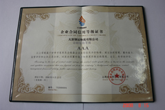 2008年8月12日,山西省信用評估有限公司對我公司的合同信用狀況進行評價,確定我公司2007年度合同信用綜合評價級別為AAA級,并頒發(fā)《企業(yè)合同信用等級證書》。