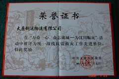 2008年7月25日,我公司被太原市委統(tǒng)戰(zhàn)部授予“統(tǒng)戰(zhàn)系統(tǒng)抗震救災(zāi)先進(jìn)單位”榮譽稱號。