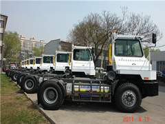 2011年4月12日,我公司購置的9臺重汽鋼廠轉(zhuǎn)運牽引車(LNG燃料車)到廠,即將投入使用。在全公司大范圍的使用LNG燃料汽車,結(jié)合甩掛牽引技術的推廣應用,將顯著提高車輛利用效率,有效降低車輛運營成本。